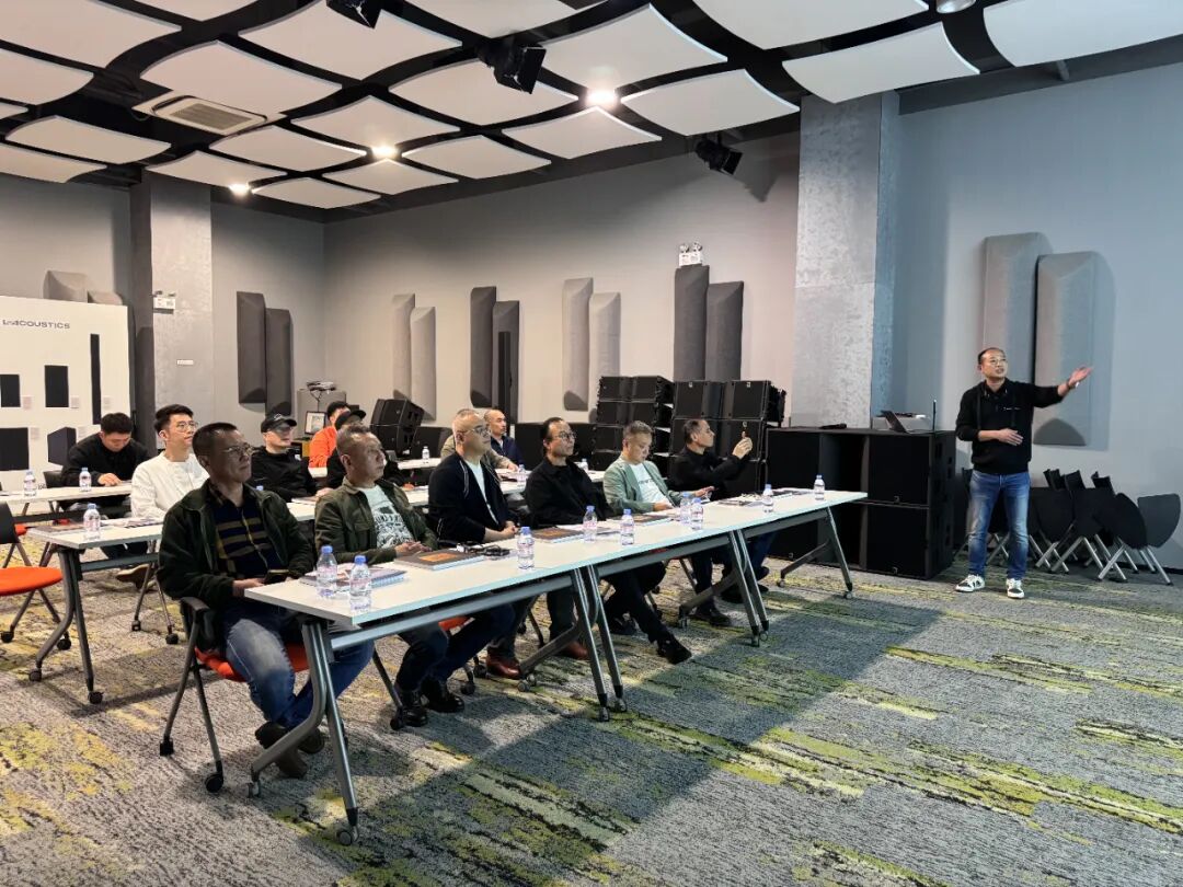 在试听环节中,清晰的音质和丰富的层次感让每位参与者都感受到了音响技术的魅力。夏经理详细为广东舞台美术研究会的各位来宾讲解了L-Acoustics扬声器的技术特点及其在不同场合的应用,帮助来宾们更好地理解这一产品的优势。通过介绍,华汇音响展示了产品的技术优势及技术支持方面的专业能力,确保客户能选择到合适的产品及解决方案。