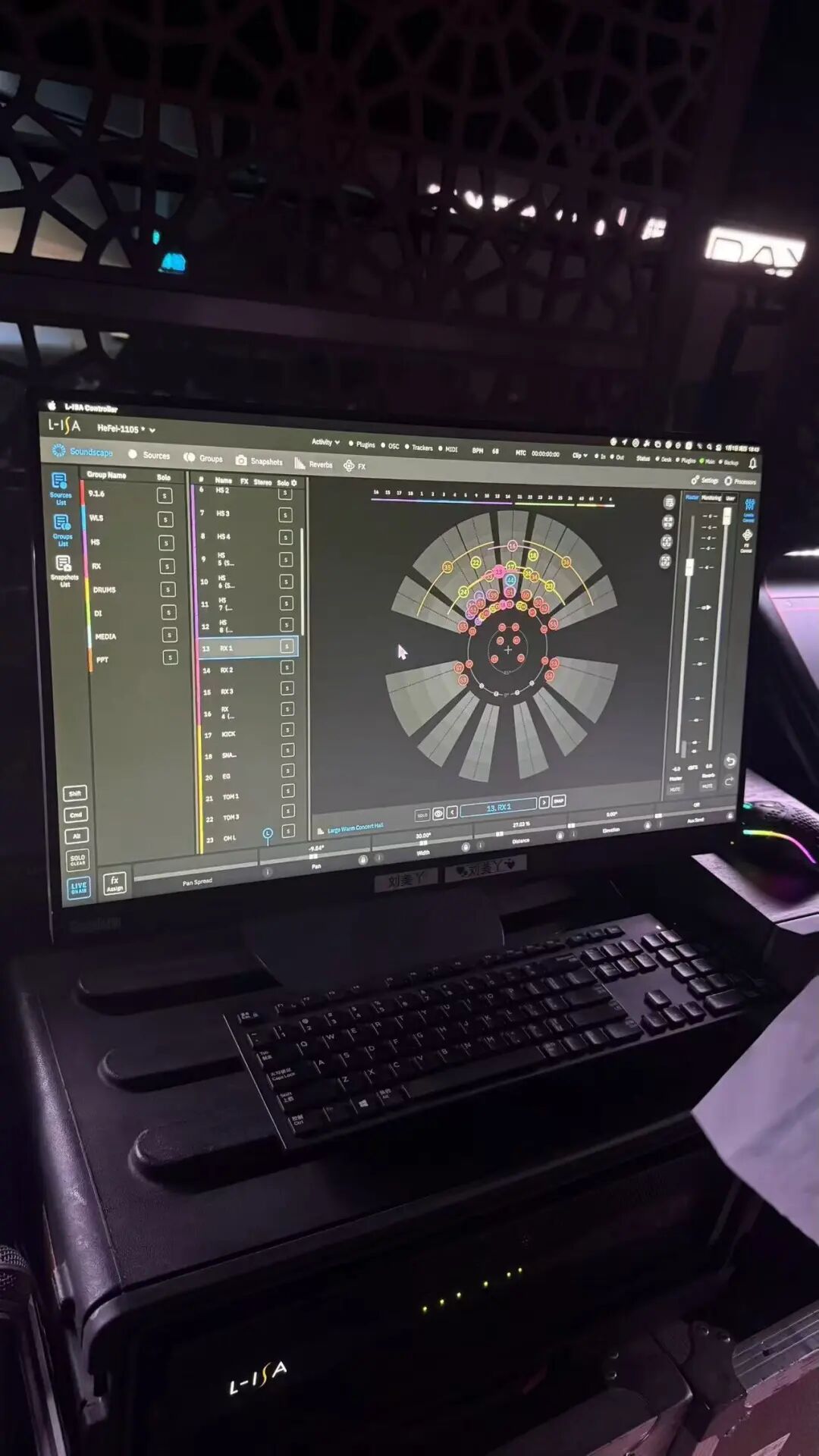 现场扬声器布局构成一个完整而精确的沉浸声场:5组由A10 Focus和A10 Wide组成的场景音箱、4组Syva侧环绕音箱、4只X12后环绕音箱、6只X8顶部环绕声音箱、6只5XT台唇补声以及4只X8舞台返听音箱。此配置确保了声音从四面八方包裹听众,创造出极为逼真和自然的声学环境。