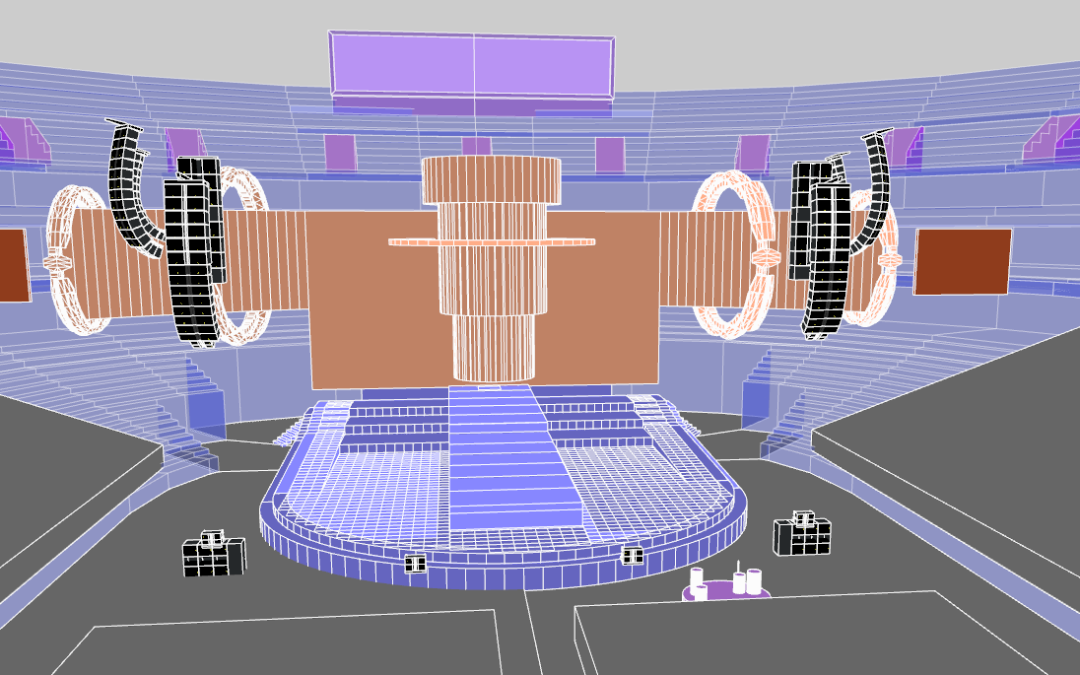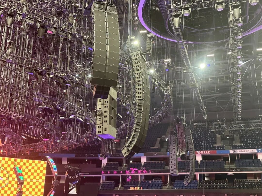 團隊在舞臺兩側吊掛了2組主擴揚聲器線陣列,每組由6只K1+8只K2+2只Kara II組成。此外還分別在其背後增設了1組超低頻揚聲器線陣列,每組包含8只KS28並采用心形模式吊掛,為觀眾提供清晰、均衡且富有層次的聽覺體驗。