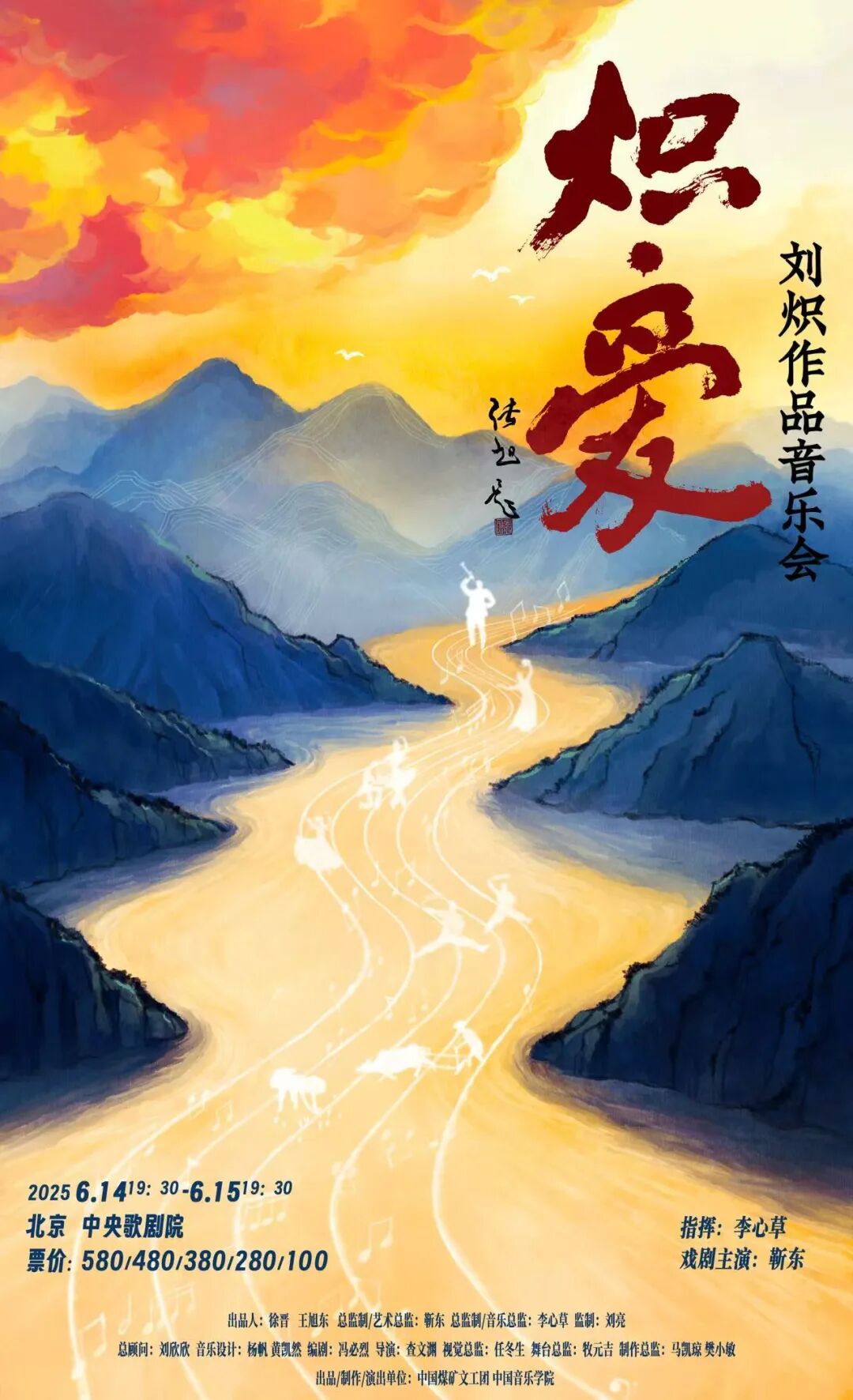 2025年6月14日-15日,《炽·爱》刘炽作品音乐会于中央歌剧院剧场圆满落幕,音乐会由中国煤矿文工团携手中国音乐学院打造,国家级院团与顶尖音乐学府合作。中国音乐学院院长、本场音乐会指挥李心草执棒中国音乐学院交响乐团,中国煤矿文工团团长靳东担任戏剧主演,串联刘炽生平故事,并带领中国煤矿文工团歌舞团演出。