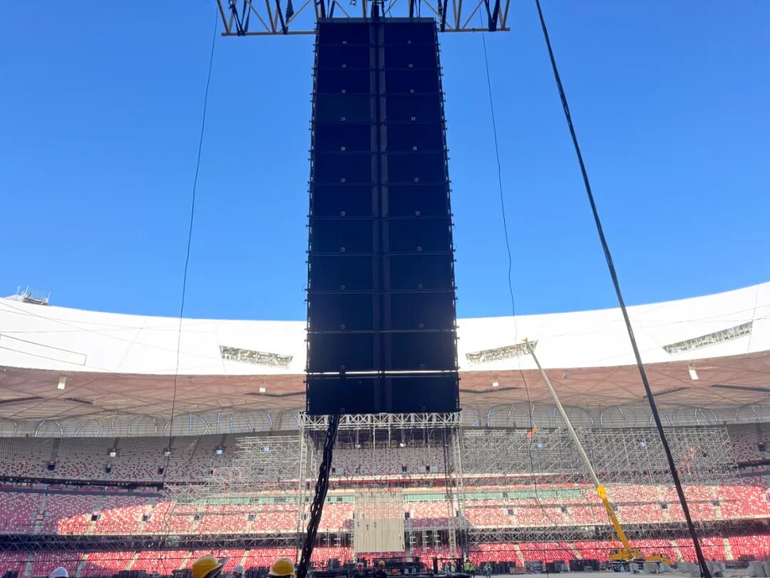 黄振安:因为之前在鸟巢演过好几次了,已经有很多应对经验,而且SV的准确建模,让我们在吊挂的时候就能够一次到位,不需要返工,所以也没有遇到很多挑战。但因为现场用了很多组delay喇叭来覆盖看台,所以增加了不少工作量。而且今年鸟巢周边加强了噪声管理,测试调试的时候要控制音量,不能太大。不过好在LA自研的M1测试平台帮了大忙,M1不仅缩短了测试时间,还不用一直播放粉噪。这样既加快了工作进度,又不会被附近居民投诉。更重要的是,M1测出的曲线反馈与现场听感非常接近,这让我们的工作轻松了很多。
