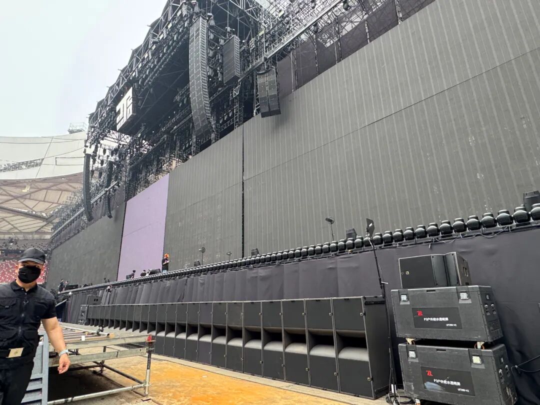 黄振安:首先要保障吊挂扬声器的安全,每组都加装保险装置与固定的风绳;然后,将所有用电的点位都做好防雨处理。为LA喇叭本身具备防水性能,所以我们不需要过多担心喇叭的防水。不过降雨对声音传播影响是比较大的,所以我们会根据实时温湿度变化,不断调整功放的空气吸收补偿功能,同时还会根据听感去调整增益与FIR。