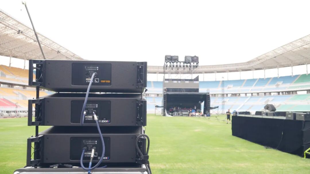 团队考虑到体育场空间开阔、声音环境复杂等实际情况,在中区部署了2组扬声器(每组12只K2);在后区也部署了2组(每组9只K2)作为延时系统,以确保远处的观众能够不受位置距离的影响,拥有优质的听音体验,真正做到“哪处都不错过”。