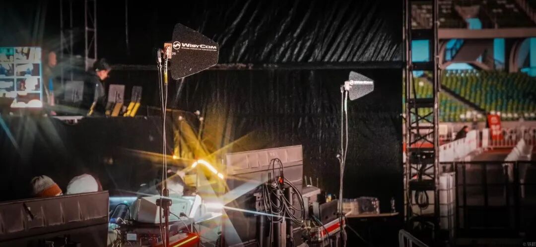 与此同时,在无线射频方面,音响团队全线采用了拥有30多年专业经验的Wisycom系统。这也是首次在浙江卫视跨年晚会耳返中启用了多达34个通道的MTK982双宽带发射器,并为众多艺人及工作人员配备了超过70台MPR50-IEM宽带真分集接收腰包。在无线天线系统实现了Wisycom全系列部署,包括一台MAT288天线矩阵、6片LFA有源天线,结合CS116T智能合路器等组件,构建了一个极其高效、稳定的射频环境,如同为现场无线信号注入了一剂“强心剂”。