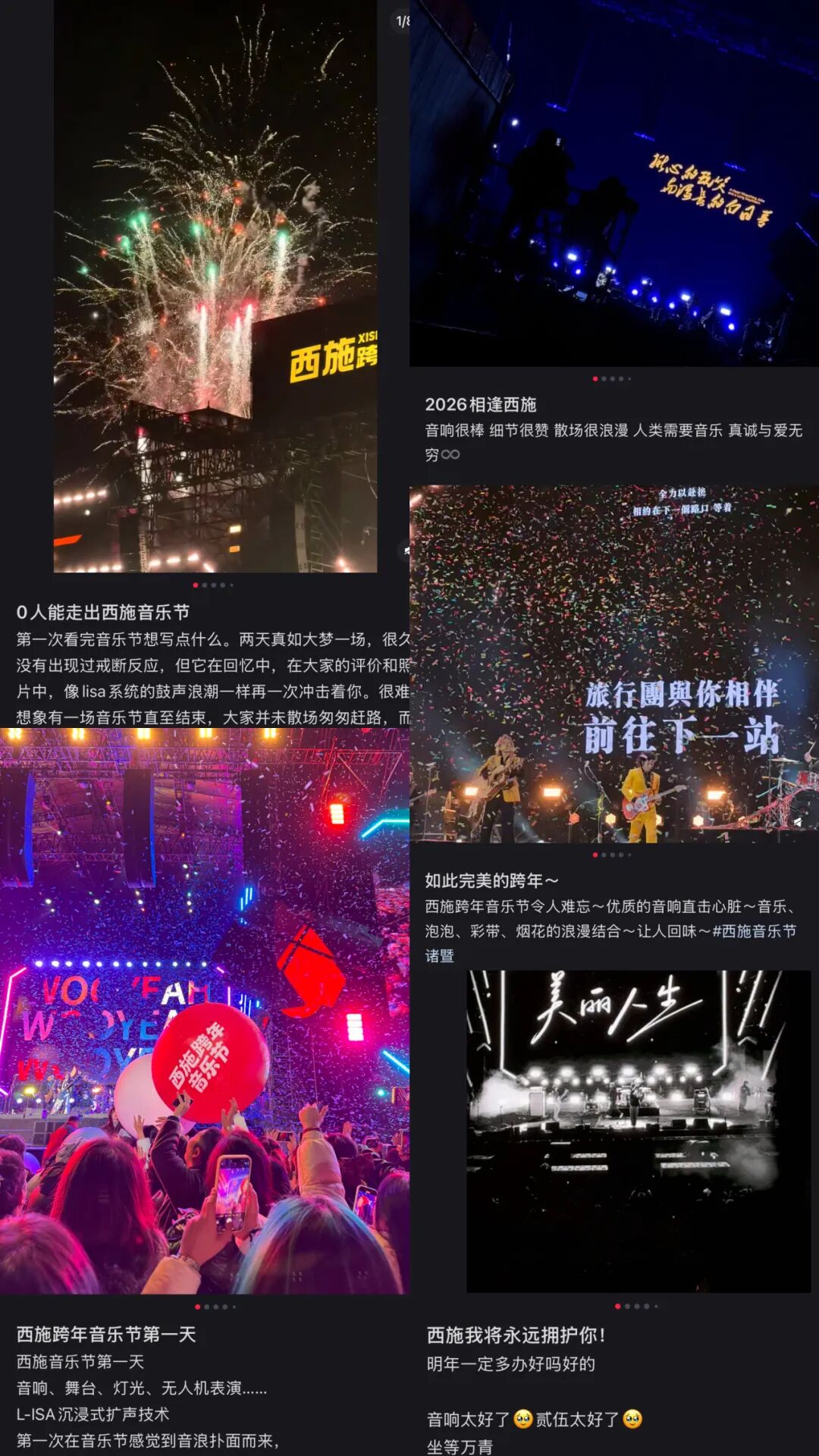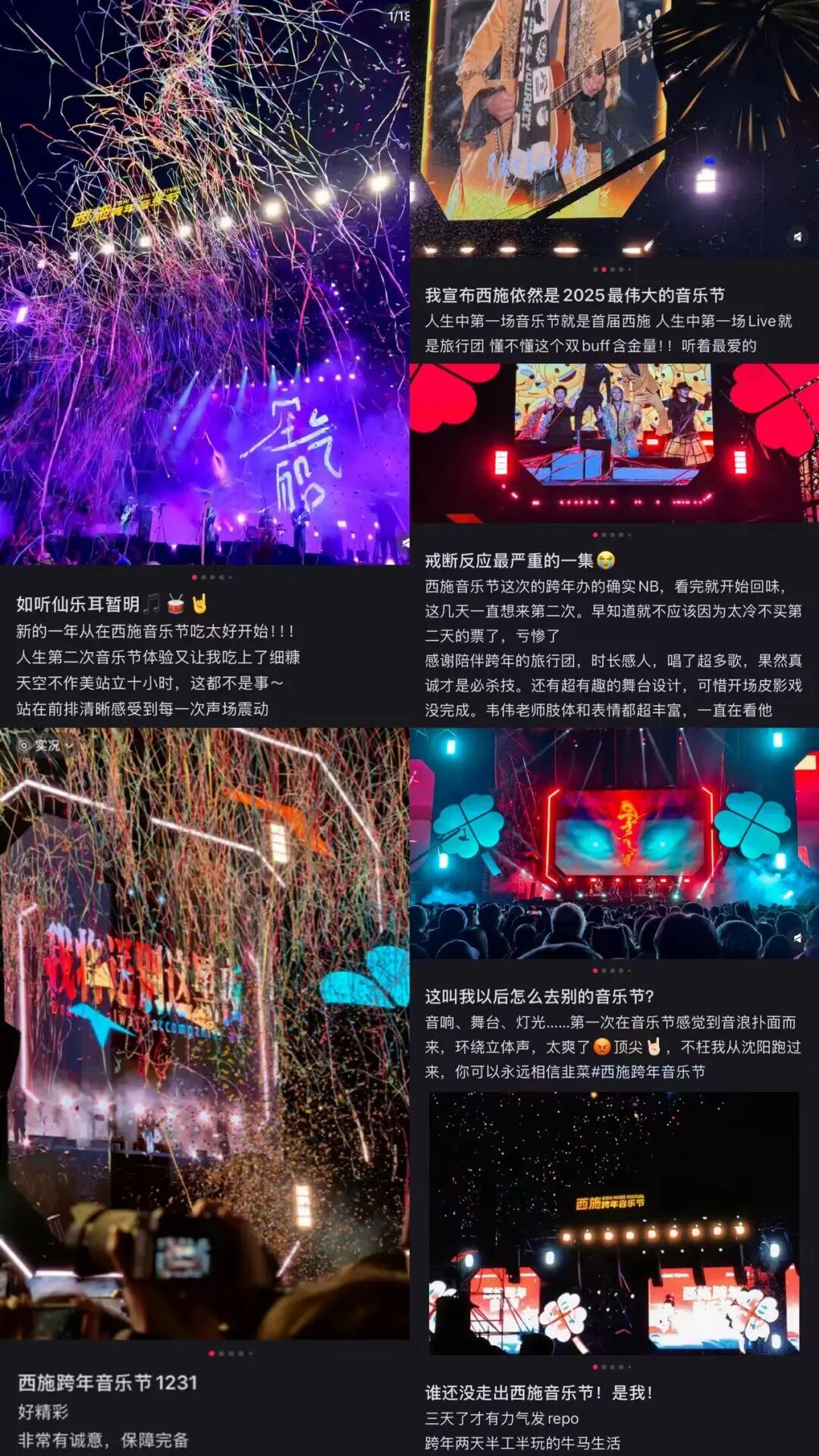 现场气氛在音乐中不断升温,相关话题也迅速在媒体平台引起热议。不少观众在演出结束后便第一时间分享感受:“0人能够走出西施跨年音乐节”“L-ISA的音效太震撼了”“跨年就得这么跨”......