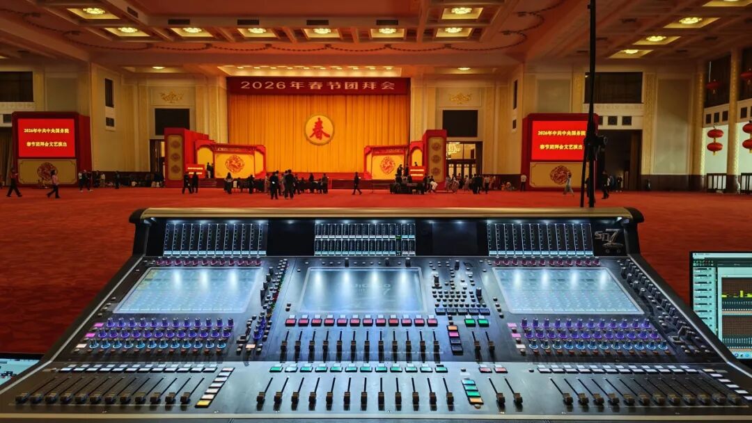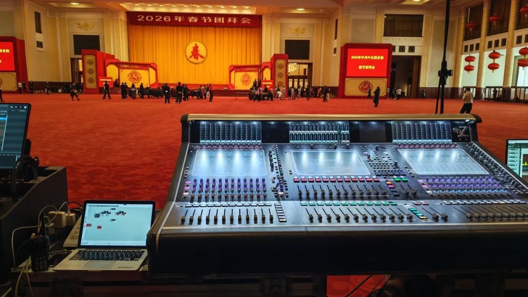 2026春节团拜会现场音频保障重任,交由Quantum 7调音台负责。2张调音台互为主备为活动提供了双重保障,确保在主调音台出现突发状况时,备用调音台能够迅速无缝切换,持续推进团拜会的顺利进行。