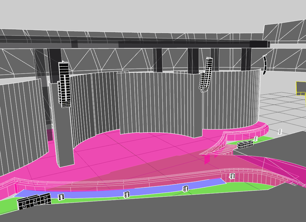 筹备前期,工程师考虑到:此次舞台造型独特,且露天体育场的声场容易受风、湿度等因素影响,扬声器布局存在一定的难度。为此,团队决定使用Soundvision进行建模,从源头减少不必要的反射,确保声音的稳定与清晰。