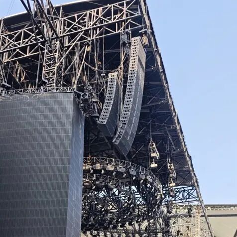 为了进一步补充两侧及远处的声场覆盖,团队还采用L-Acoustics的L系列部署侧补(单组:3只L2+1只L2D)与延时塔(单组中区延时:2只L2+1只L2D;单组后区延时:1只L2+1只L2D)。L2作为渐进式高密度线声源扬声器,能够提供高达155dB的声压级与宽广的覆盖。L2D与其搭配使用,则进一步保证了补声的全频段表现。