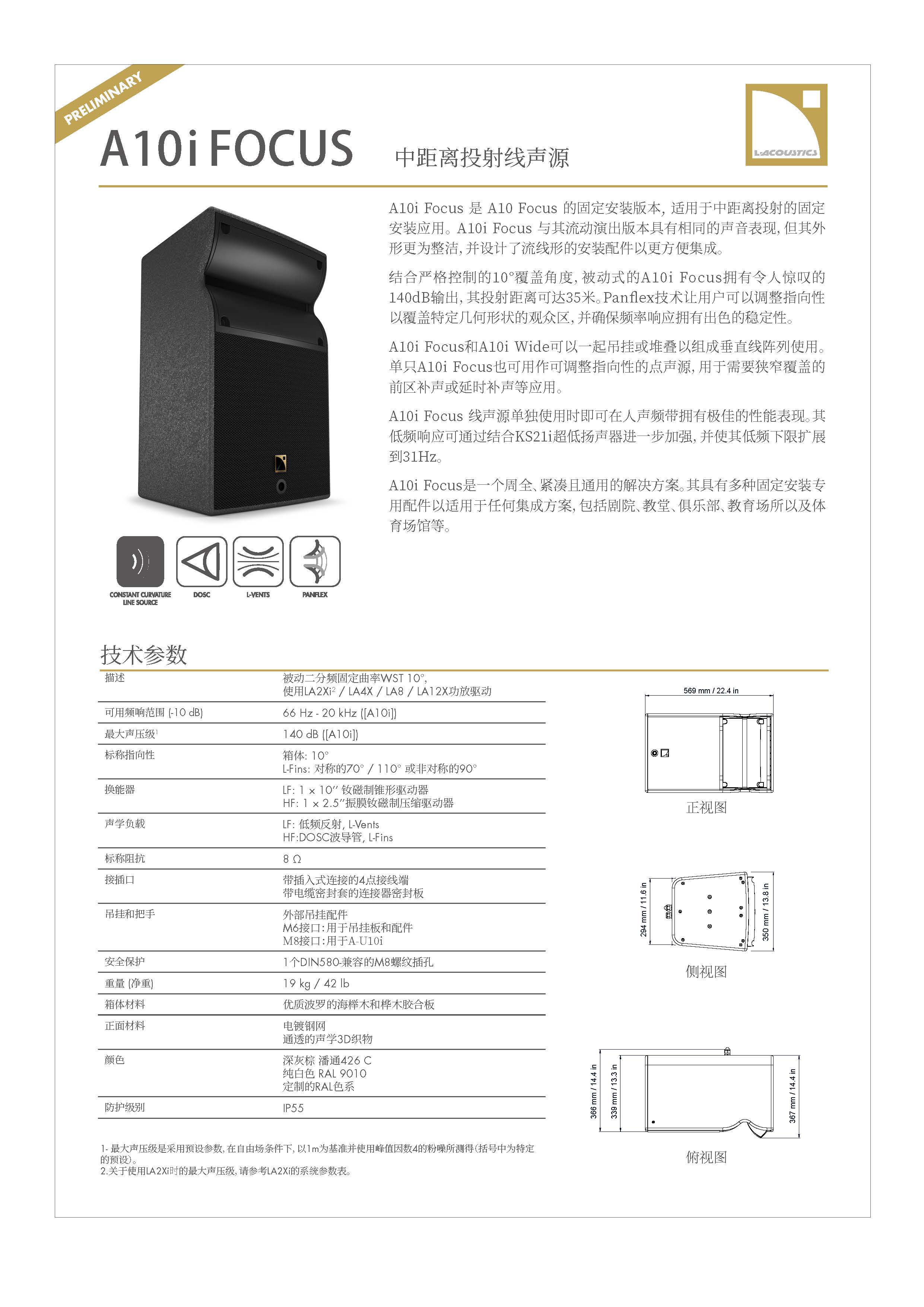 A10i Focus 是 A10 Focus 的固定安装版本, 适用于中距离投射的固定安装应用。 A10i Focus 与其流动演出版本具有相同的声音表现,但其外形更为整洁。