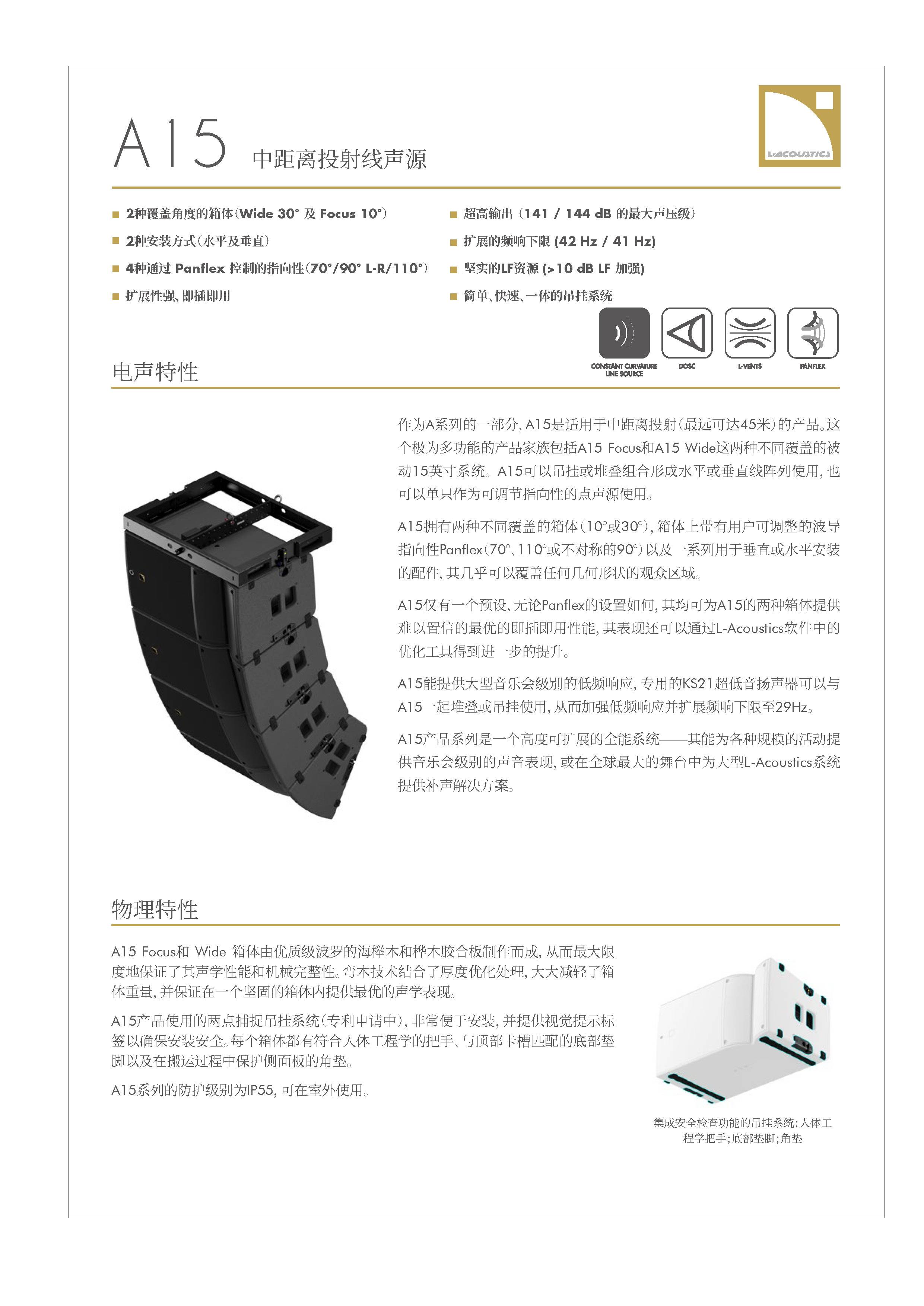A15产品系列是一个高度可扩展的全能系统——其能为各种规模的活动提 供音乐会级别的声音表现,或在全球最大的舞台中为大型L-Acoustics系统 提供补声解决方案。