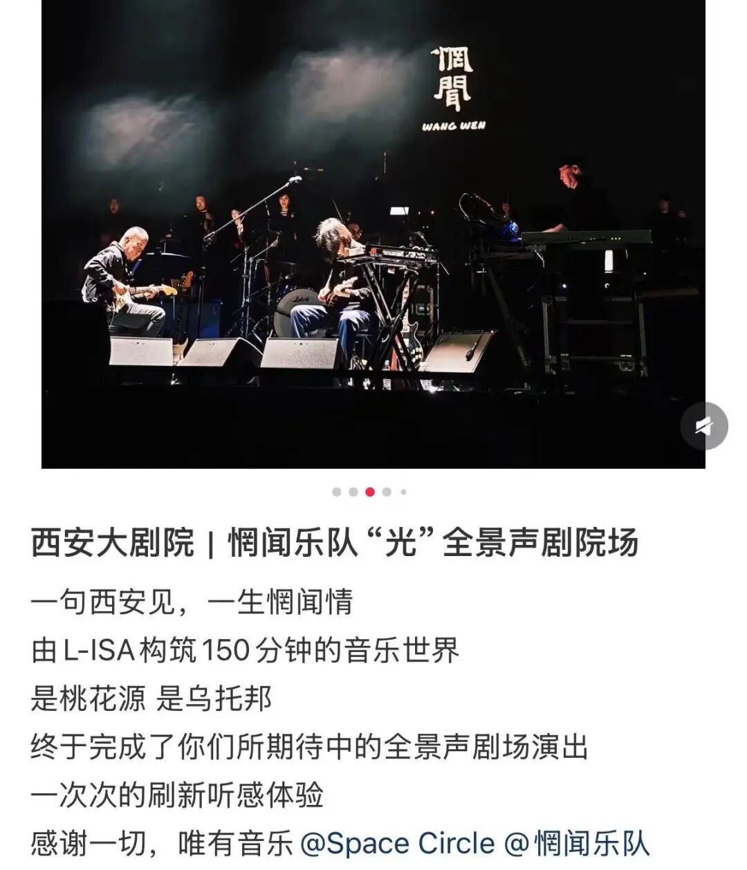 正如主办方在长文中科普的那样,西安大剧院是国内罕见的、“前区音响串数、只数足够,全场360度环绕覆盖全,且补声条件都很完善”的场地,完美“满足电声乐队或者说满足惘闻声音需求”。