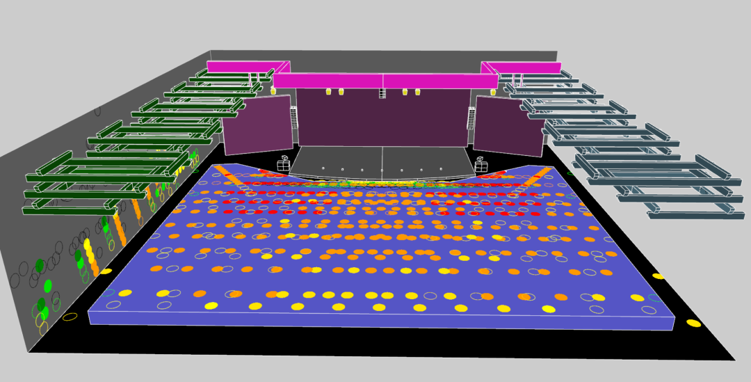 本次的音频设计中,选用了两组Kara作为主扩扬声器吊挂于舞台上方;Kara最大声压级可达到141dB,110度的水平覆盖角使得现场有着极高的一致性和声场均匀度。