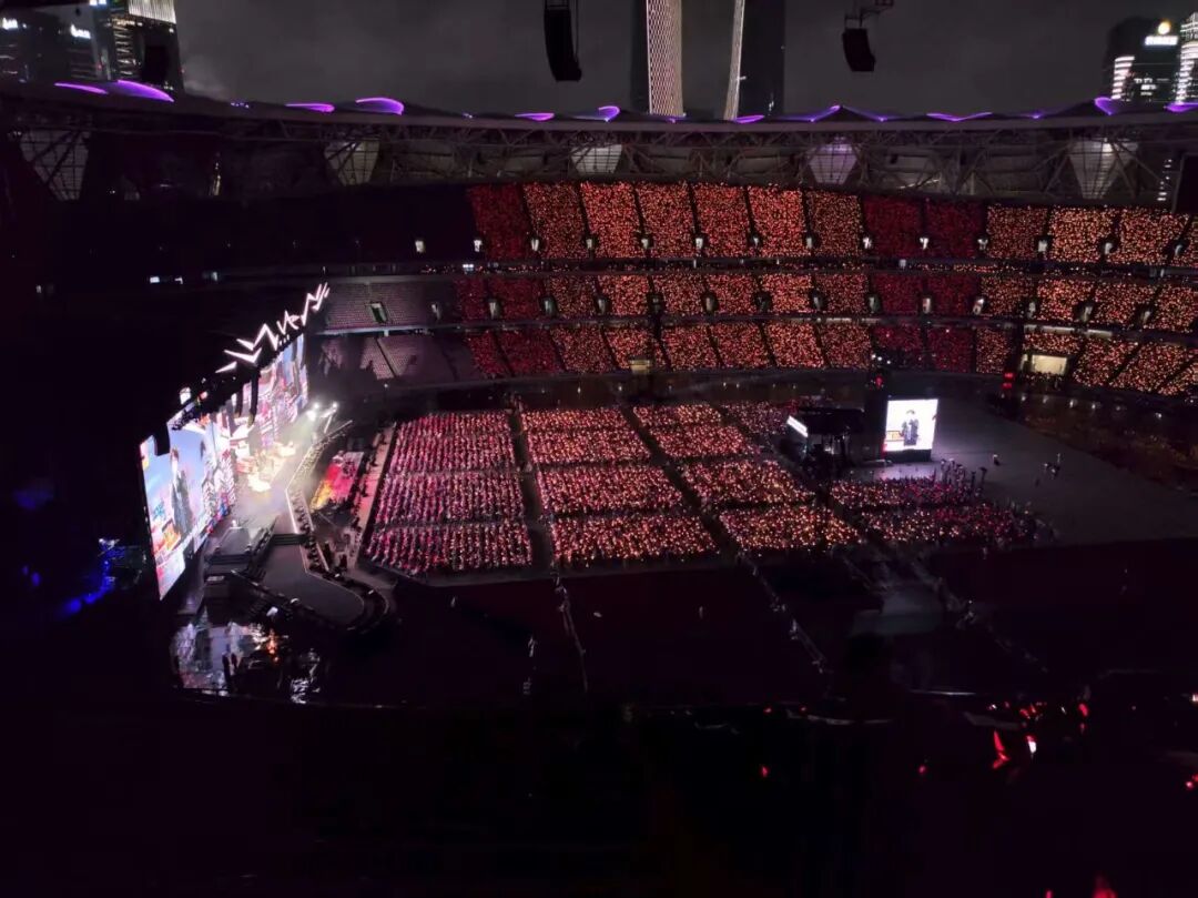 考虑到场馆中区、后区与舞台主扩较远,声音的传播会出现衰减等情况。为此,团队设置了四座延时塔,中区延时:2组(每组12只)K2;后区延时:2组(每组9只)K2。当《有何不可》这般熟悉的旋律响起时,声音能够瞬间触达最后一排,确保全场“声同步”。无论歌迷听众的位置如何变化,都能实现万人同频合唱,将音乐的感染力推向极致。